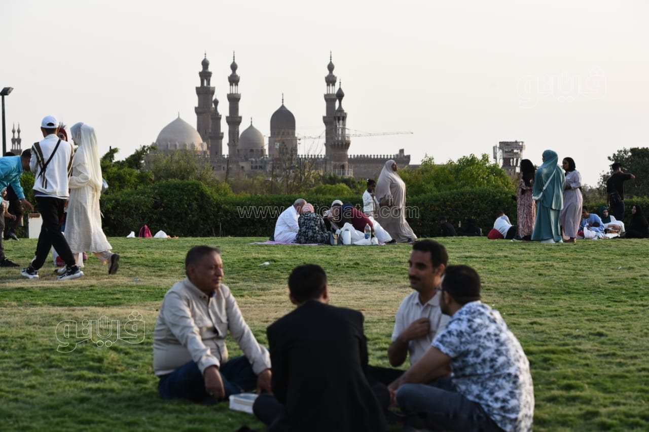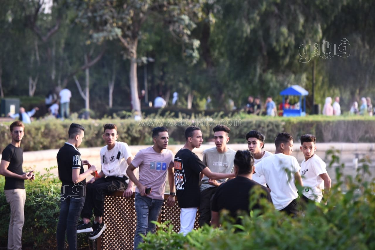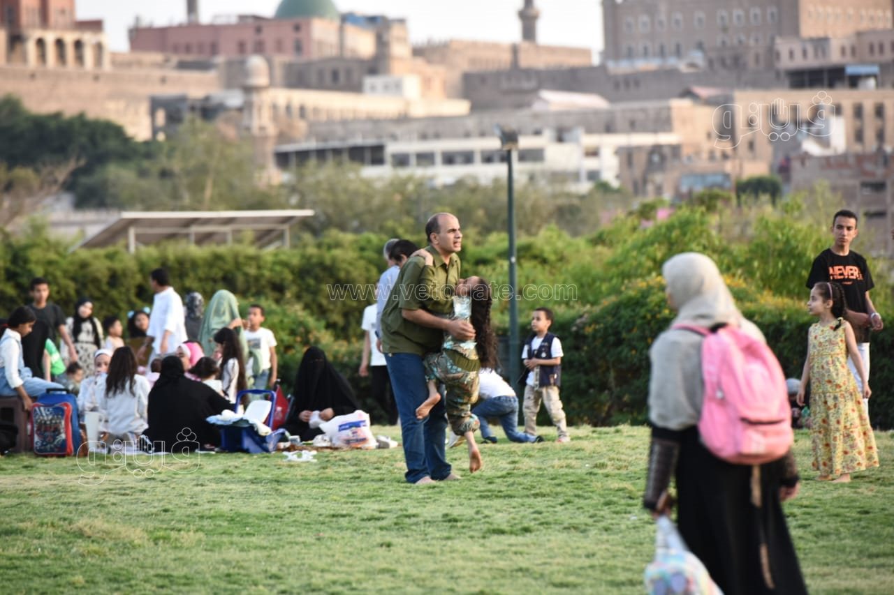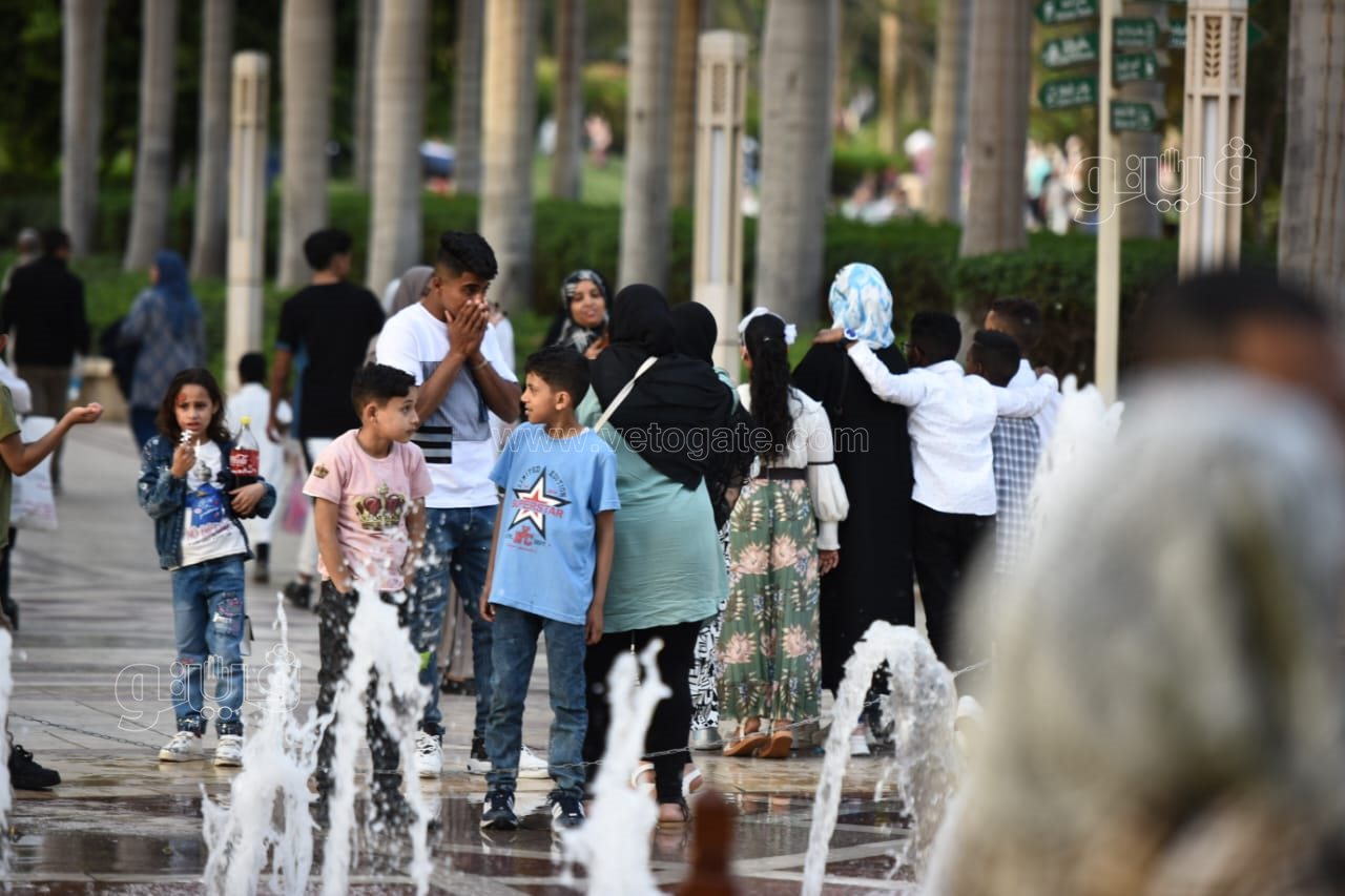 اللعب مع النافورة أبرز احتفالات المواطنين بأول أيام العيد في حديقة الأزهر (صور)