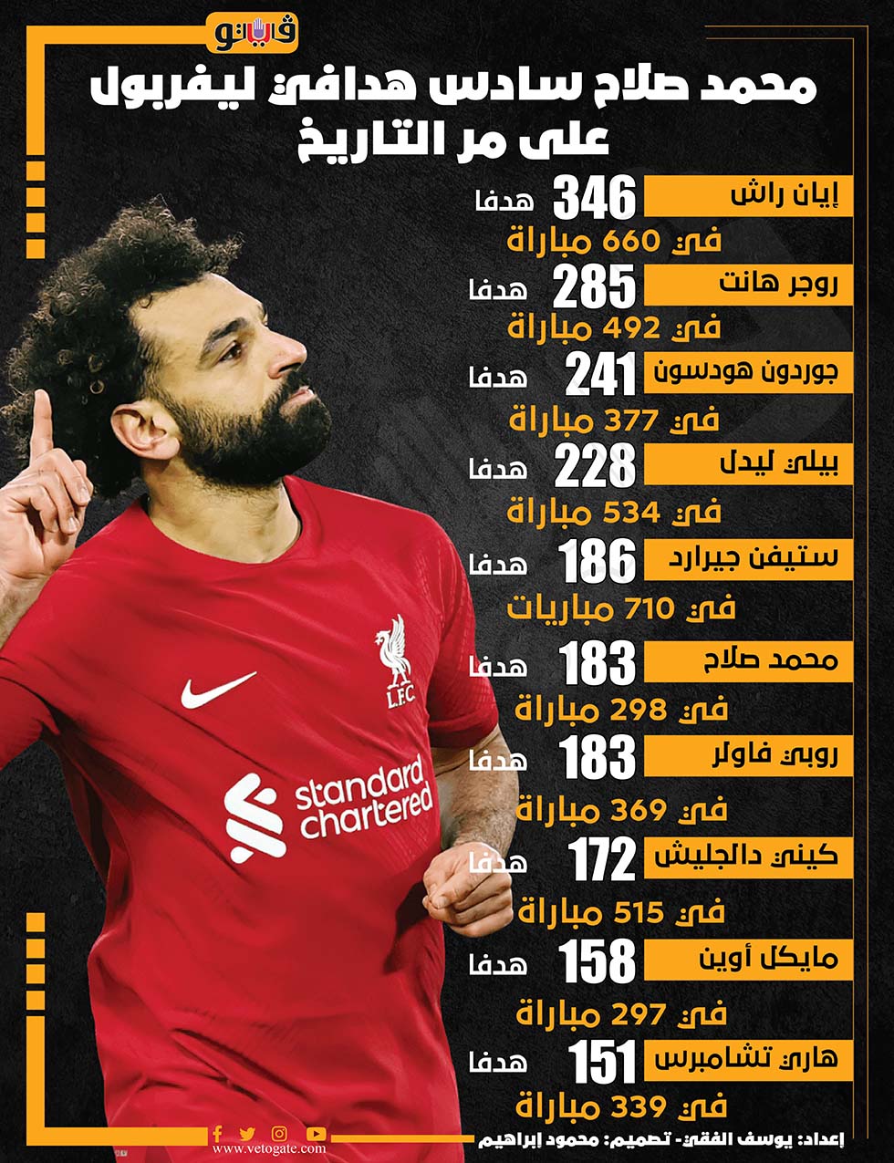 محمد صلاح سادس هدافي ليفربول على مر التاريخ (إنفوجراف) السبت 22/أبريل/2023 - 08:05 م 4/22/2023 8:05:16 PM محمد صلاح يوسف الفقي شارك طباعة 18 حجم الخط شارك طباعة محمد صلاح صلاح ارقام محمد صلاح الدوري الانجليزي روبي فاولر