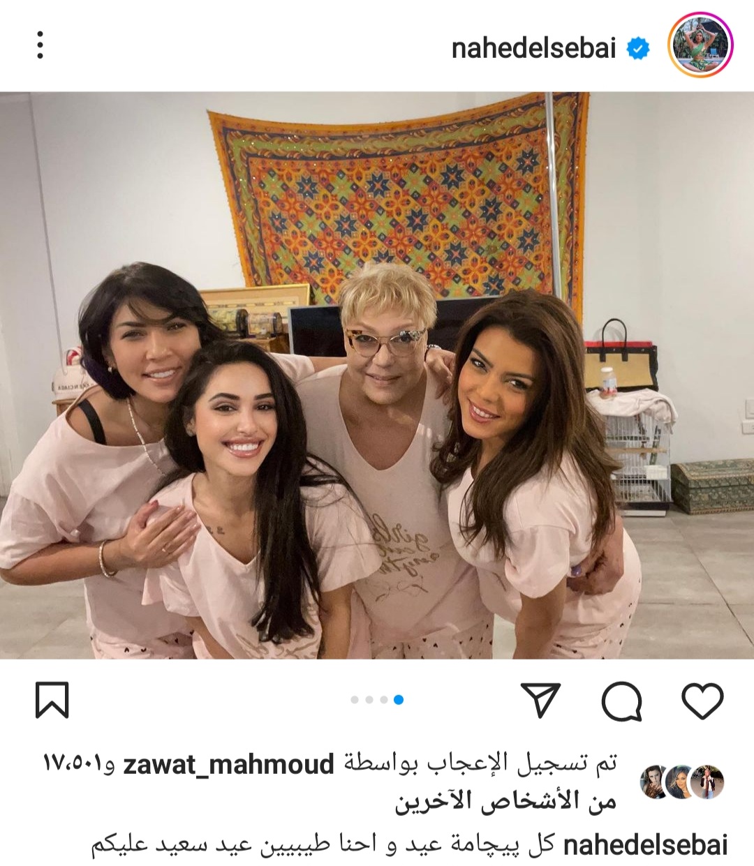 احتفلت الفنانة ناهد السباعي مع عائلتها بعيد الفطر المبارك، وقامت بمشاركة صورة لها بصحبة عائلتها، وهم يرتدون بيجامات العيد ذات التصميم المتشابه بينهم.