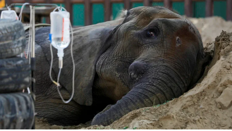 وسقطت أنثى الفيل، البالغة من العمر 17 عاما وكانت تعاني من مرض شديد في بركة مياه هذا الشهر ولم تتمكن من النهوض دون مساعدة.