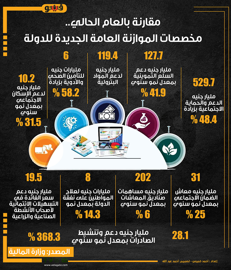مقارنة بالعام الحالي.. مخصصات الموازنة العامة الجديدة للدولة (إنفوجراف) الأحد 23/أبريل/2023 - 03:47 م 4/23/2023 3:47:27 PM الدكتور محمد معيط وزير المالية أحمد خميس شارك طباعة 18 حجم الخط شارك طباعة موازنة الدعم والحماية الاجتماعية الموازنة الجديدة سعر الفائدة التسهيلات الائتمانية