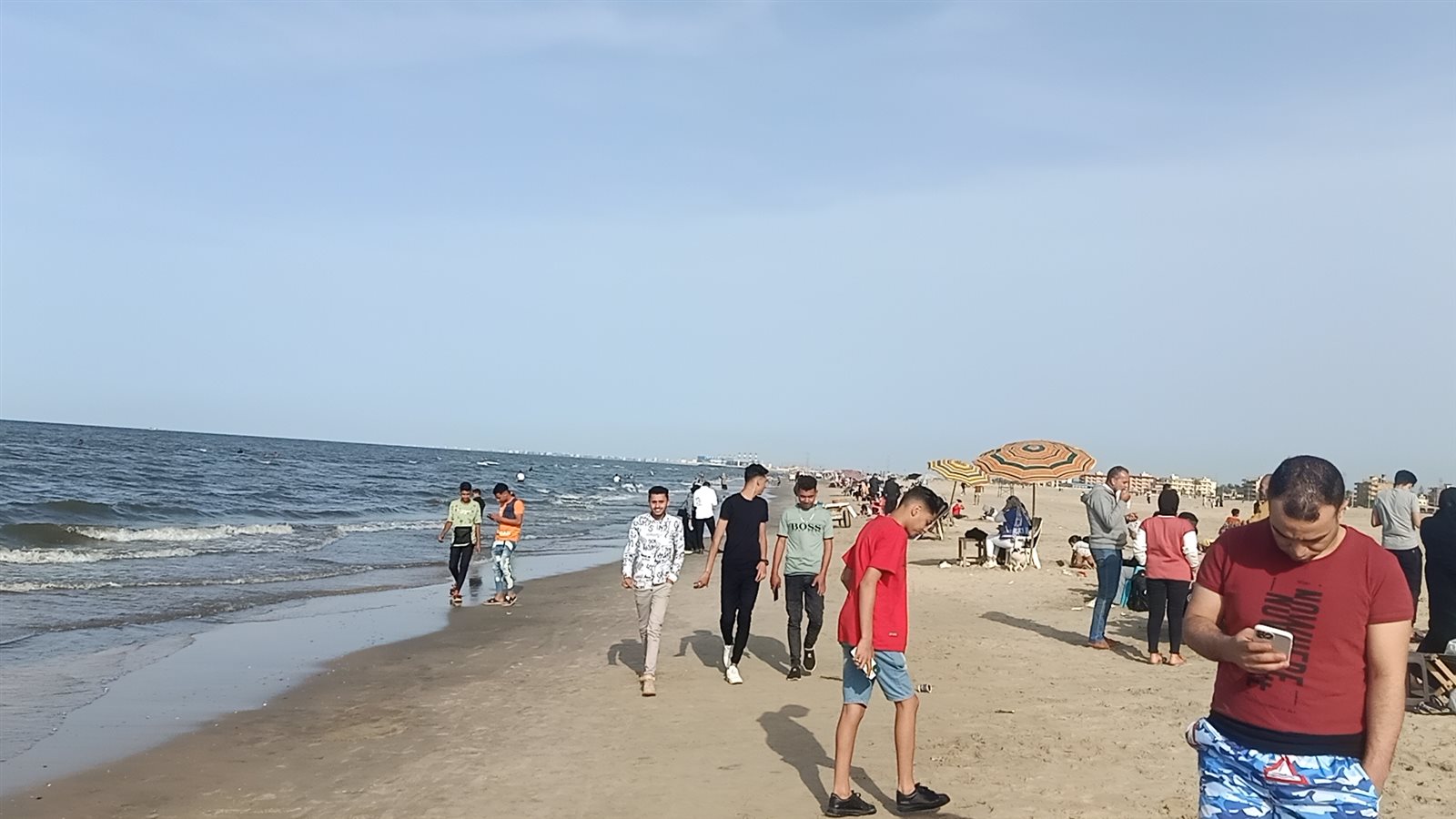 إقبال الأهالي على شاطئ جمصة في ثالث أيام عيد الفطر(فيديو وصور)
