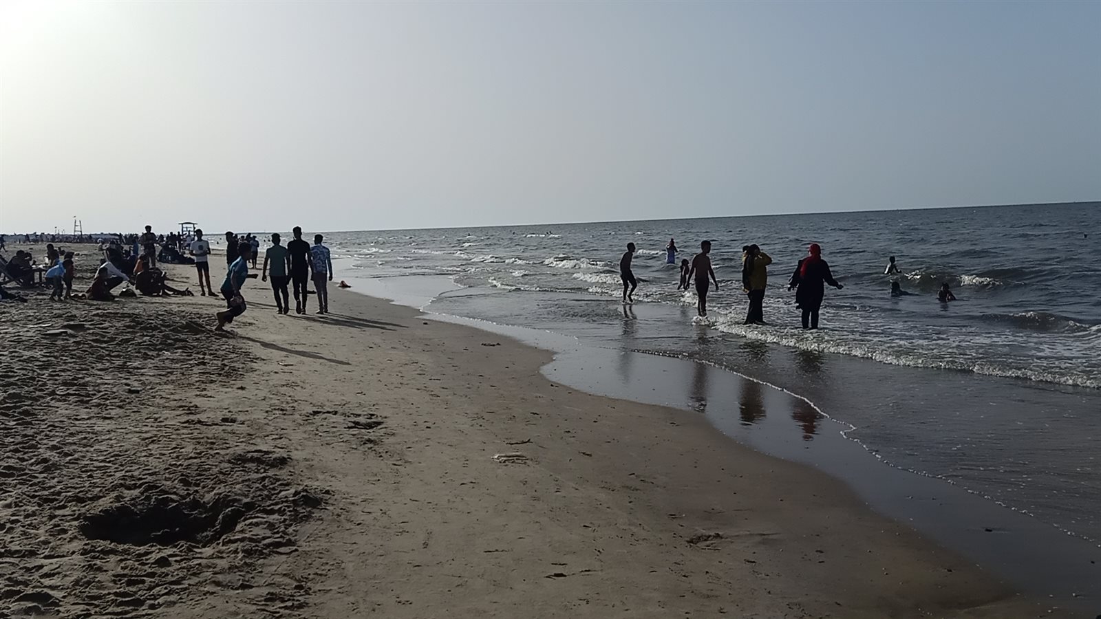 حيث توافد الأهالي للاستمتاع بالهواء واللعب والمرح علي الشاطئ، وحرص كل شخص علي الاستمتاع بطريقته الخاصة
