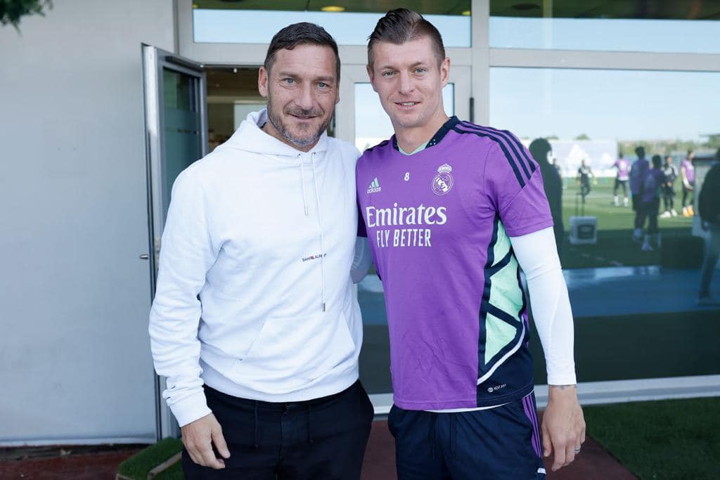 زار النجم الإيطالي وأسطورة نادي روما توتي تدريبات ريال مدريد اليوم، وأعرب لاعبو الملكي عن سعادتهم بسبب تواجد توتي، مؤكدين ذلك عبر حساباتهم الشخصية على مواقع التواصل الاجتماعي.