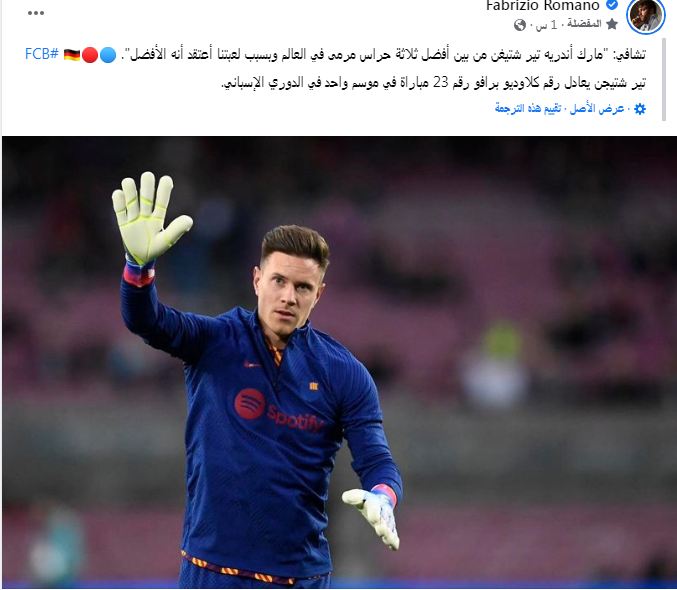 تشافي: تيرشتيجن من أفضل 3 حراس مرمي في العالم