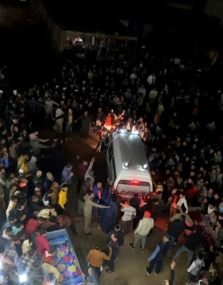 شيع أهالي مركز بلقاس بمحافظة الدقهلية جثامين ضحايا حادث ترعة السبعة طريق الستامومي من بينهم شقيقان.