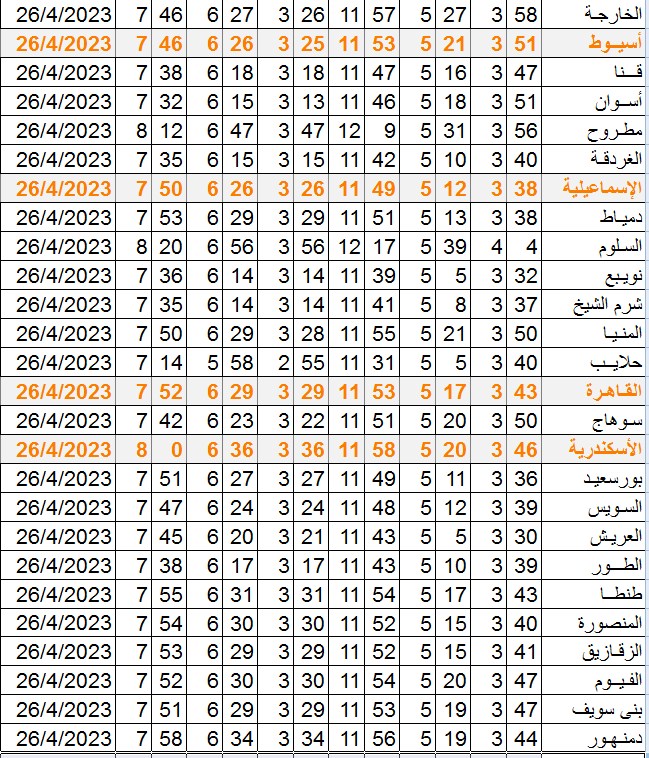 مواقيت الصلاة اليوم بتوقيت أسيوط