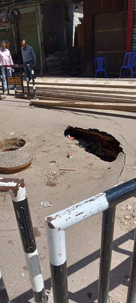 هبوط أرضي بمنطقة سوق العباسي بالمحلة (صور)