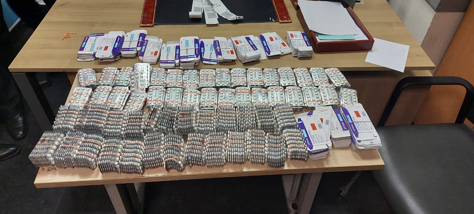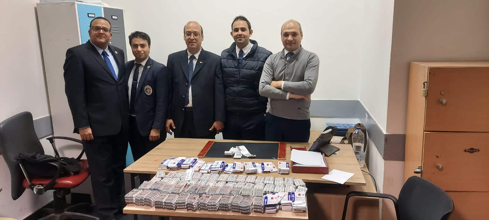 وقام محمد نبيل مأمور الجمرك، باستيقافه بعدما حاول الخروج من الدائرة الجمركية وبتفتيش الحقيبة وجد كمية من الشرائط الدوائية، وقام احمد ابو بكر مدير الجمرك، بتكليف لجنة مكونه من الدكتور مؤمن حسن وهيثم رجب ومحمد قنديل وعبد القادر السيد مأموري الجمرك، لجرد وعد وتحريز المضبوطات التي بلغت ٨٠٦ شريط دوائي.