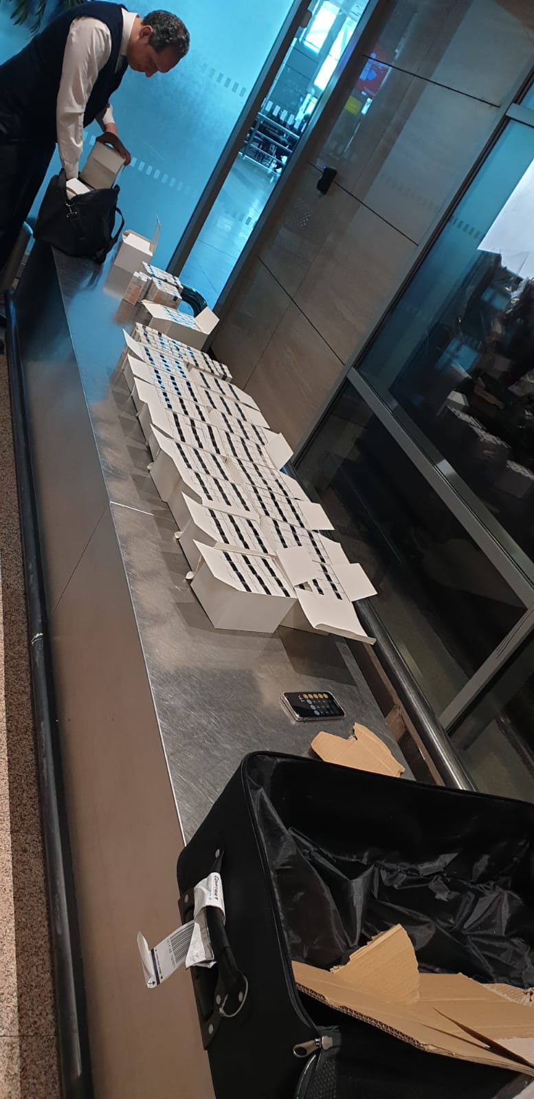 وبتفتيش حقائب الراكب علي جهاز الفحص بالأشعة بواسطة كل من هادي أشرف الوكيل مأمور الجمرك، وأحمد الشريف رئيس القسم، واللذان تلاحظ لهما وجود عبوات متكررة بكثرة داخل حقائب الراكب.