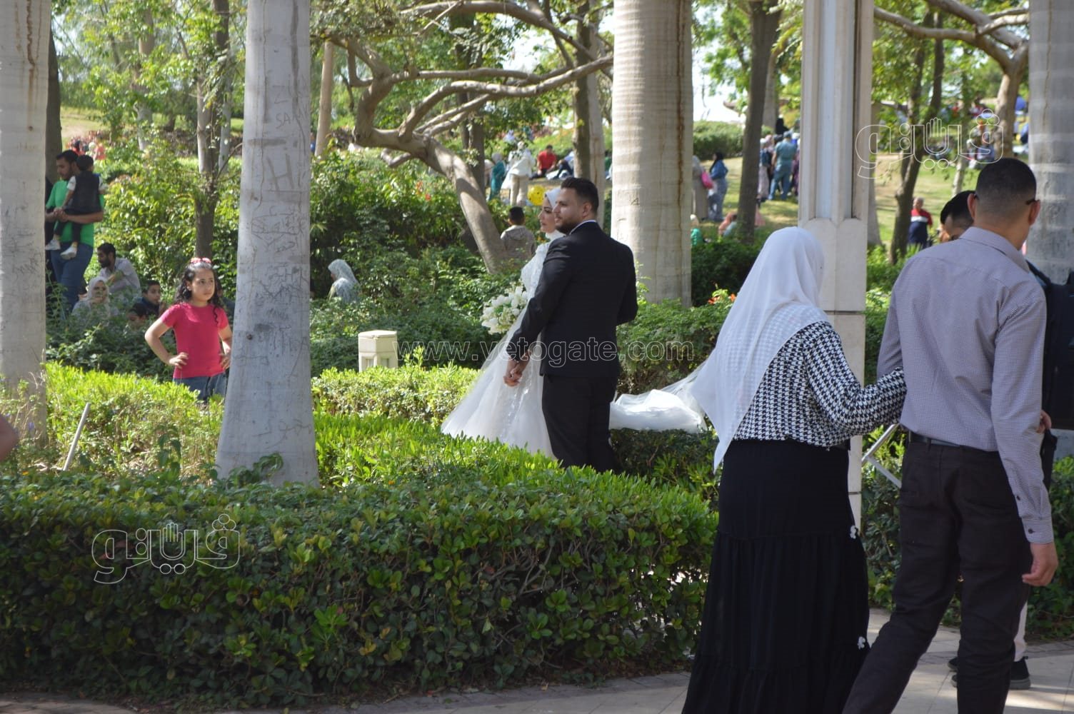 عروسان يحتفلان بزفافهما بحديقة الأزهر (صور)
