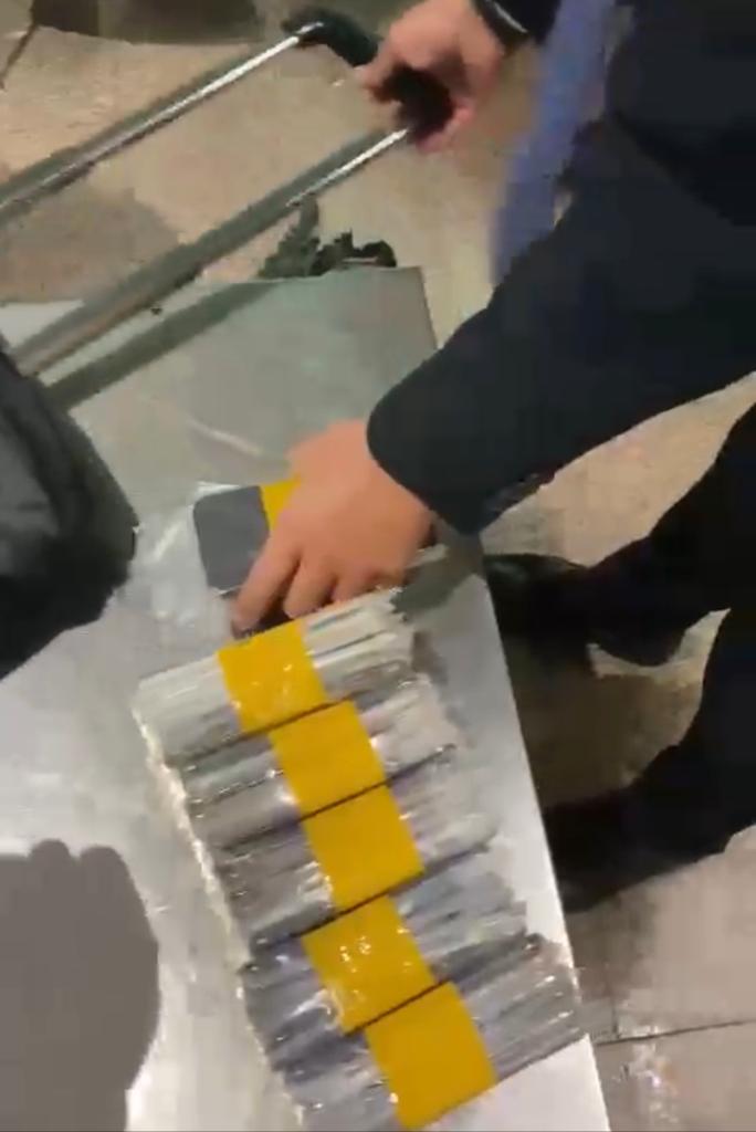 وقامت أميرة طلبة مدير الحركة المشرف على صالة الوصول بمبني الركاب رقم ٣، بتكليف لجنة مكونة من مصطفي صادق وحسام الشافعي ومحمود عباس مأموري الجمرك، لاستكمال التفتيش اليدوي ما أسفر عن ضبط كمية أخري من التليفونات مخبأة داخل البطانة الداخلية للحقيبة وداخل فتحة الجرار الخلفي لنفس الحقيبة.