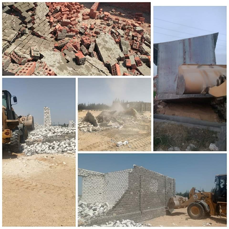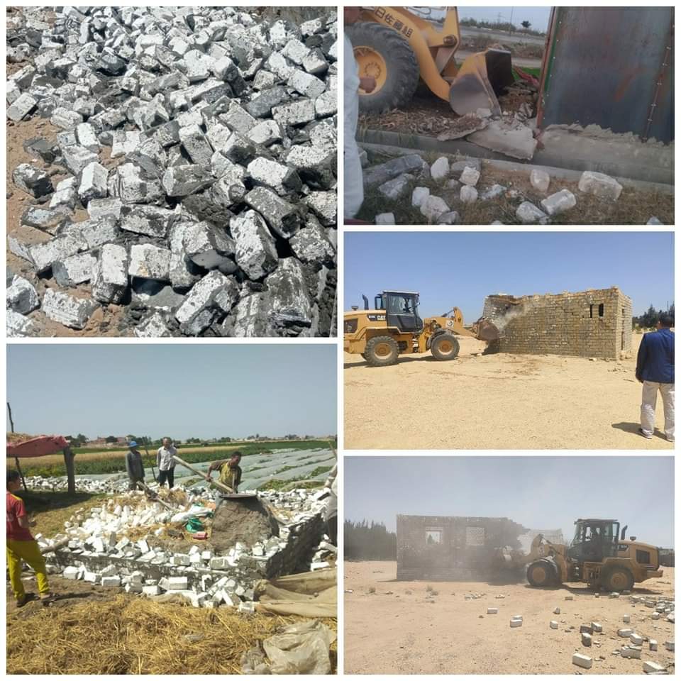 بالإضافة إلى إزالة حالتي تعدي على الأراضى الزراعية لمبنى بمساحة 300 م٢ وسور بطول 35 متر بقرية كفر داود بوادى النطرون وتم مصادرة الخلاطة والأدوات المستخدمة فى البناء.
