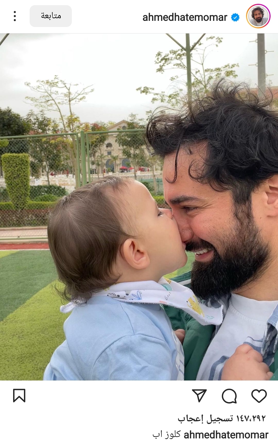 نشر الفنان أحمد حاتم عبر صفحته على الانستجرام صورة بصحبة ابنه، وكتب مداعبا جمهوره:"كلوز أب".