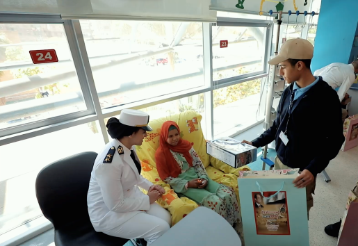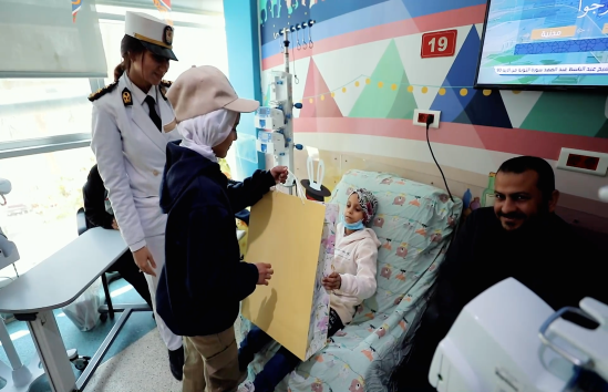 نظمت وزارة الداخلية زيارة لعدد من شباب وطلائع المناطق الحضارية الجديدة لمستشفى سرطان الأطفال ٥٧٣٥٧ ليشاركوا رجال الشرطة تقديم هدايا للأطفال الذين يتلقون العلاج بها بمناسبة عيد الفطر المبارك؛ فى ضوء ما توليه وزارة الداخلية من اهتمام بالشباب والطلائع بالمناطق الحضارية الجديدة، وفى إطار مبادرة "كلنا واحد - جيل جديد" التى أطلقتها وزارة الداخلية تحت رعاية رئيس الجمهورية، والتى تهدف إلى غرس قيم الولاء والانتماء لديهم.