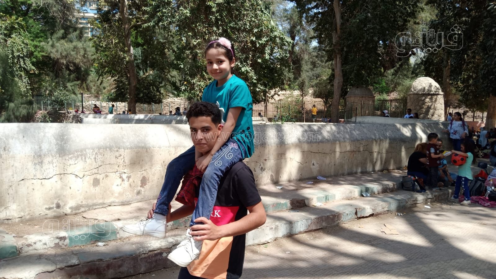 وحرصت بعض العائلات على اصطحاب أطفالها لزيارة الحيوانات الموجودة بالحديقة،والاستمتاع بالأجواء العائلية في آخر أيام إجازة العيد