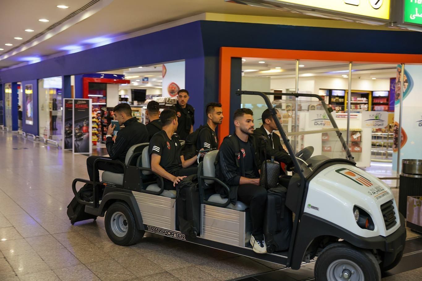 وقالت مصادر مطلعة بالمطار تم إنهاء إجراءات سفر البعثة من مبني الركاب رقم 3 بالمطار، وذلك على الرحلة الخاصة والتابعة لشركة مصر للطيران، وسط تسهيلات خاصة من قبل فرق العلاقات العامة بشركة ميناء القاهرة الجوي وشركة مصر للطيران، وانتظر اللاعبون داخل استراحات المطار عقب إنهاء الإجراءات وحتى موعد إقلاع الطائرة وطالبهم كثير من الركاب بتحقيق الفوز على الفريق المغربي.