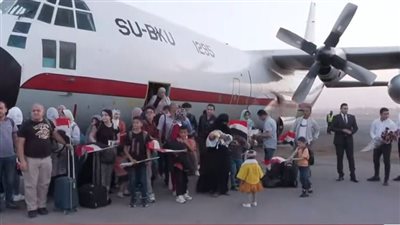 اللقطات الأولى للحظة وصول طائرتين على متنهما مصريون قادمون من السودان (فيديو)