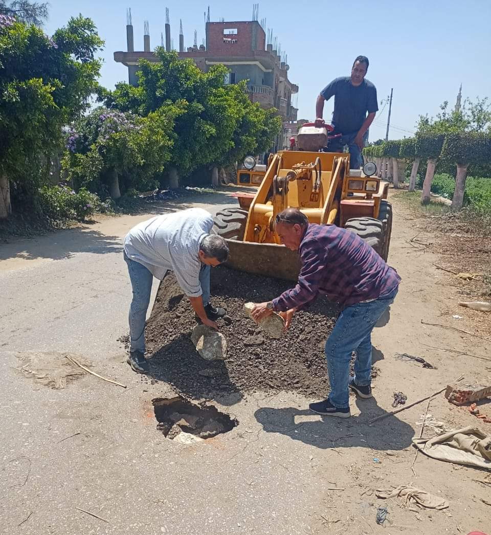 إصلاح هبوط أرضي ورصف طريق المعصرة في بلقاس بالدقهلية (صور)