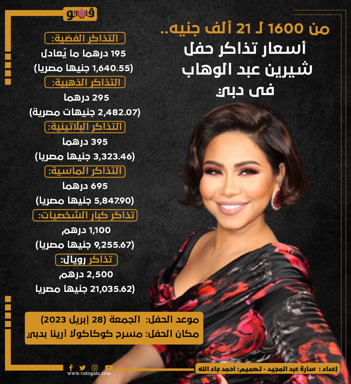 من 1600 لـ 21 ألف جنيه.. أسعار تذاكر حفل شيرين عبد الوهاب فى دبي (انفوجراف) الأربعاء 26/أبريل/2023 - 01:25 م 4/26/2023 1:25:57 PM شيرين عبد الوهاب، فيتو سارة عبد المجيد شارك طباعة 18 حجم الخط شارك طباعة المطربة شيرين المطربة شيرين عبد الوهاب حفل شيرين عبد الوهاب في دبي حفل شيرين عبد الوهاب حفل شيرين شيرين عبد الوهاب