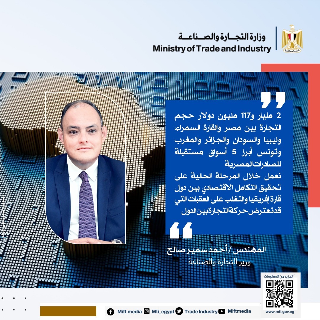 أحمد سمير: 2 مليار و117 مليون دولار حجم التجارة بين مصر وقارة أفريقيا