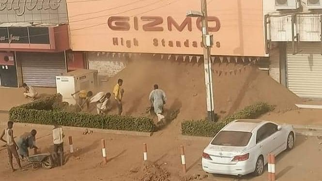 ويقوم أصحاب المتاجر في السودان بردم المتاجر بالكامل بالتراب، خشية اقتحامه أو الاستيلاء على كل مافيه.