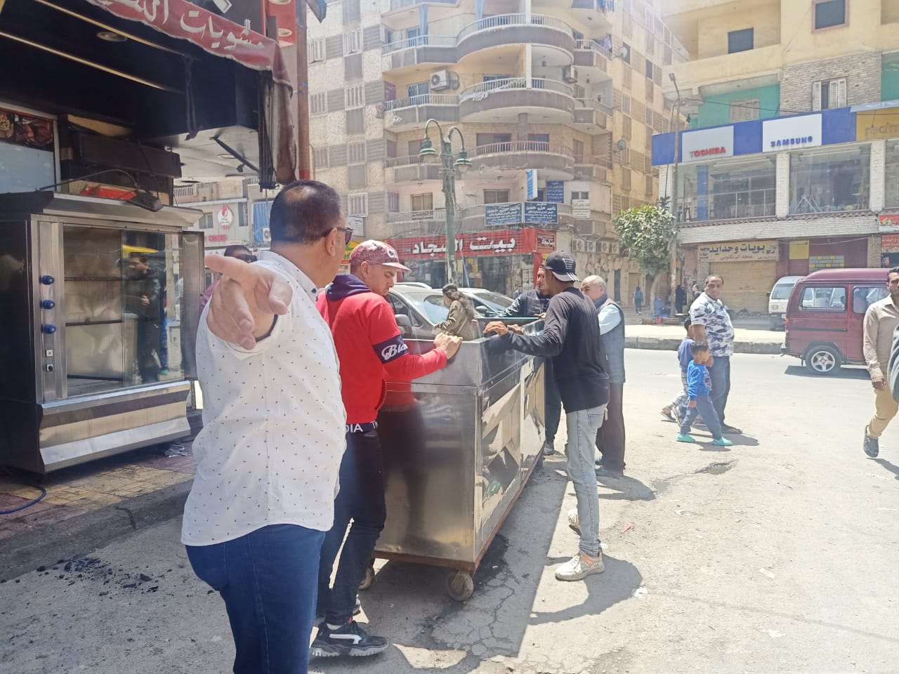 وجاء ذلك بمرافقة سكرتير عام الحي ومديري إشغال الطريق، المتابعة الميدانية، شئون البيئة وحدة الإزالة، وحدة التدخل السريع بالحي وادارات الرصد البيئي، الإيرادات ورخص المحلات وبالاشتراك مع إدارة العجمي الطبية، وادارة الطب البيطري، الأمن الصناعي، ادارة التفتيش الصيدلي بقطاع العجمي، مكتب القوي العاملة، وشركة الصرف الصحي، شركة مياه الشرب وشركة نهضة مصر.