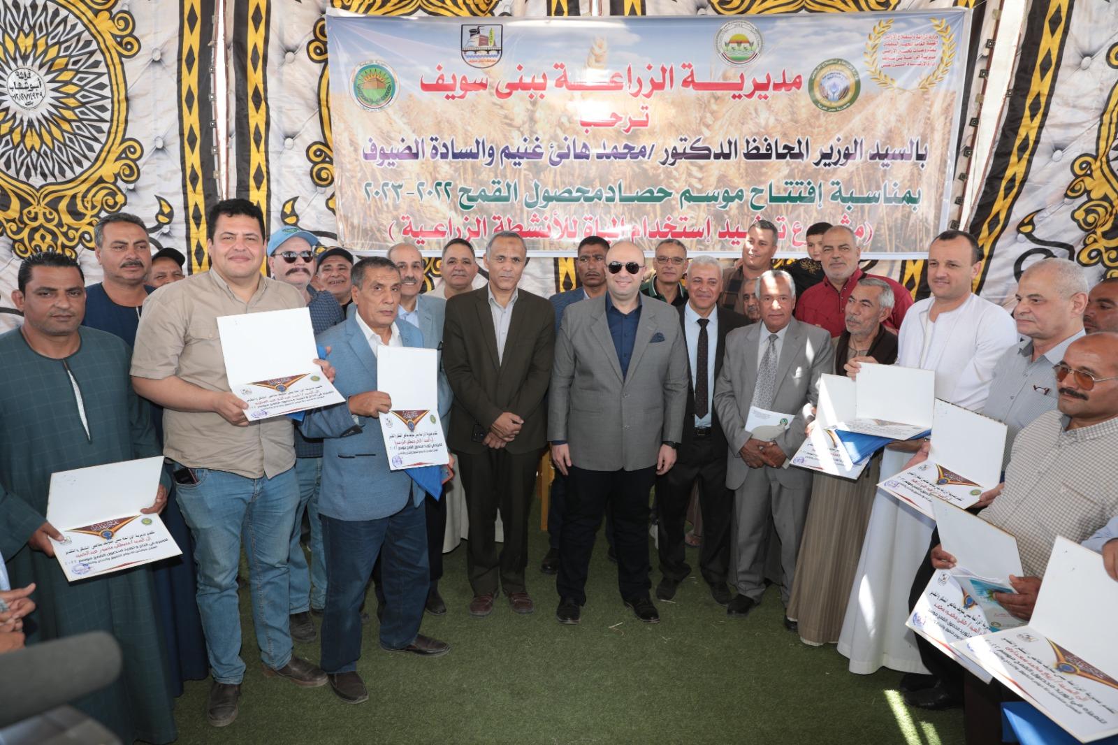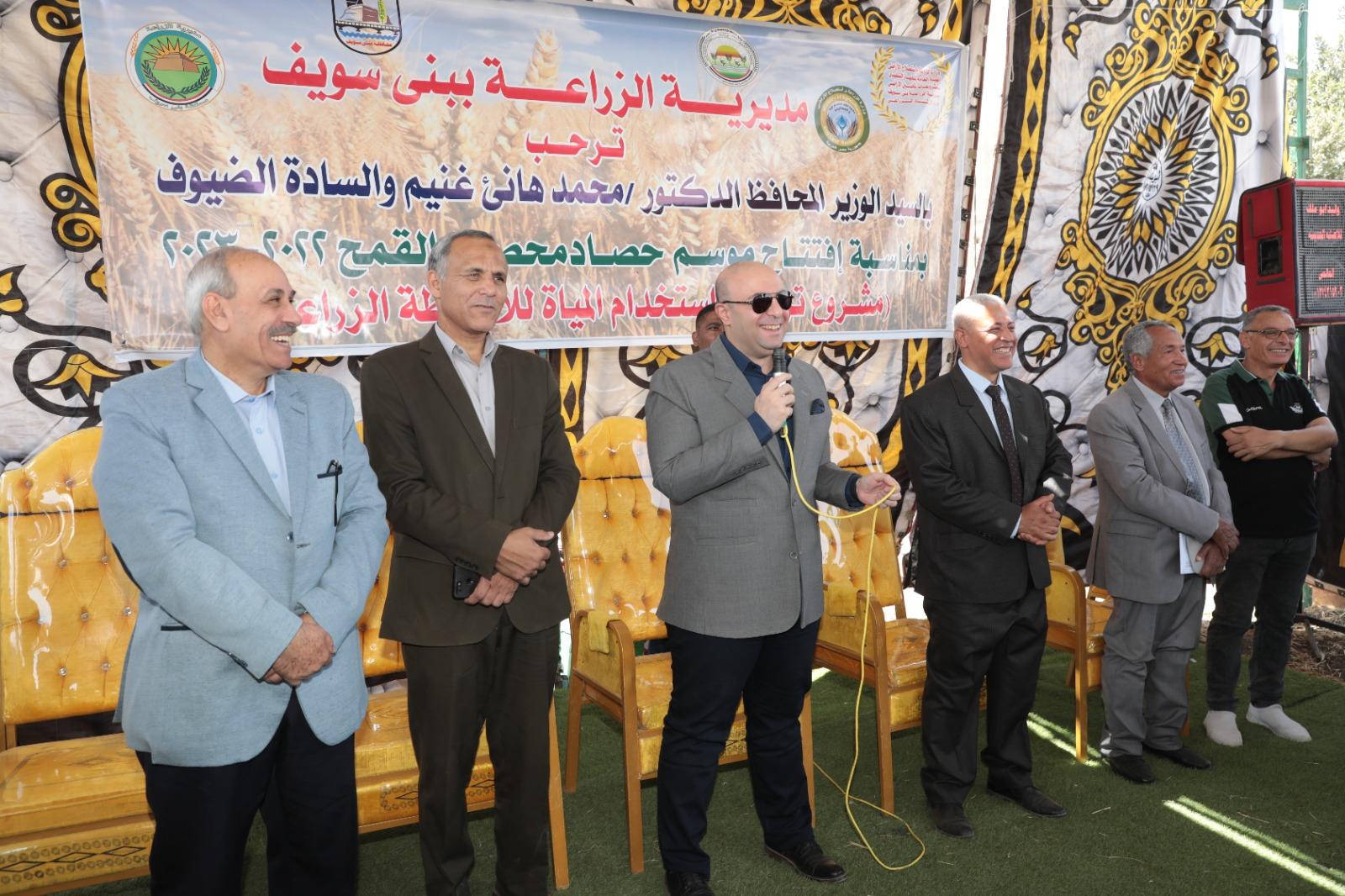 محافظ بني سويف يفتتح موسم حصاد وتوريد القمح: بالوعي سنعبر الأزمات