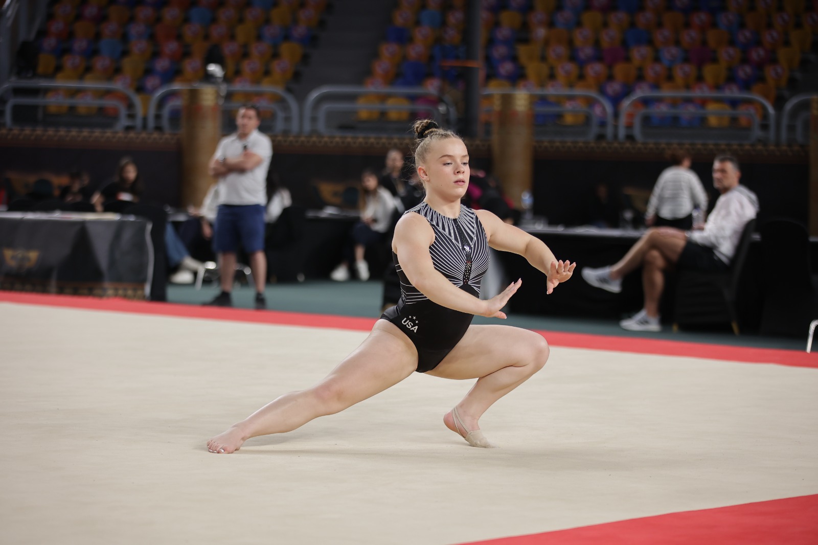 منتخبات كأس العالم للجمباز تؤدي تدريباتها بالصالة المغطاة(صور)