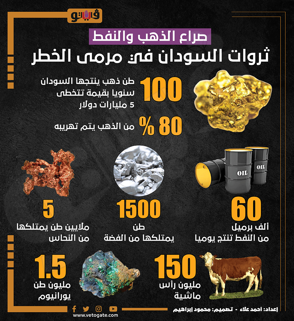 صراع الذهب والنفط، ثروات السودان في مرمى الخطر (إنفوجراف) الخميس 27/أبريل/2023 - 01:32 م 4/27/2023 1:32:17 PM السودان، فيتو احمد علاء شارك طباعة 18 حجم الخط شارك طباعة ثروات السودان السودان الذهب النفط الفضة النحاس