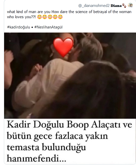 وأضاف المتابعون أن الفنان التركي كان في سهرة مع أصدقائه في أحد الملاهي الليلية في تركيا، إلا أن أحد الموجودين في المكان نفسه، تمكن من تسجيل لحظات "خاصة" جمعته بامرأة لم يكشف عن هويتها.