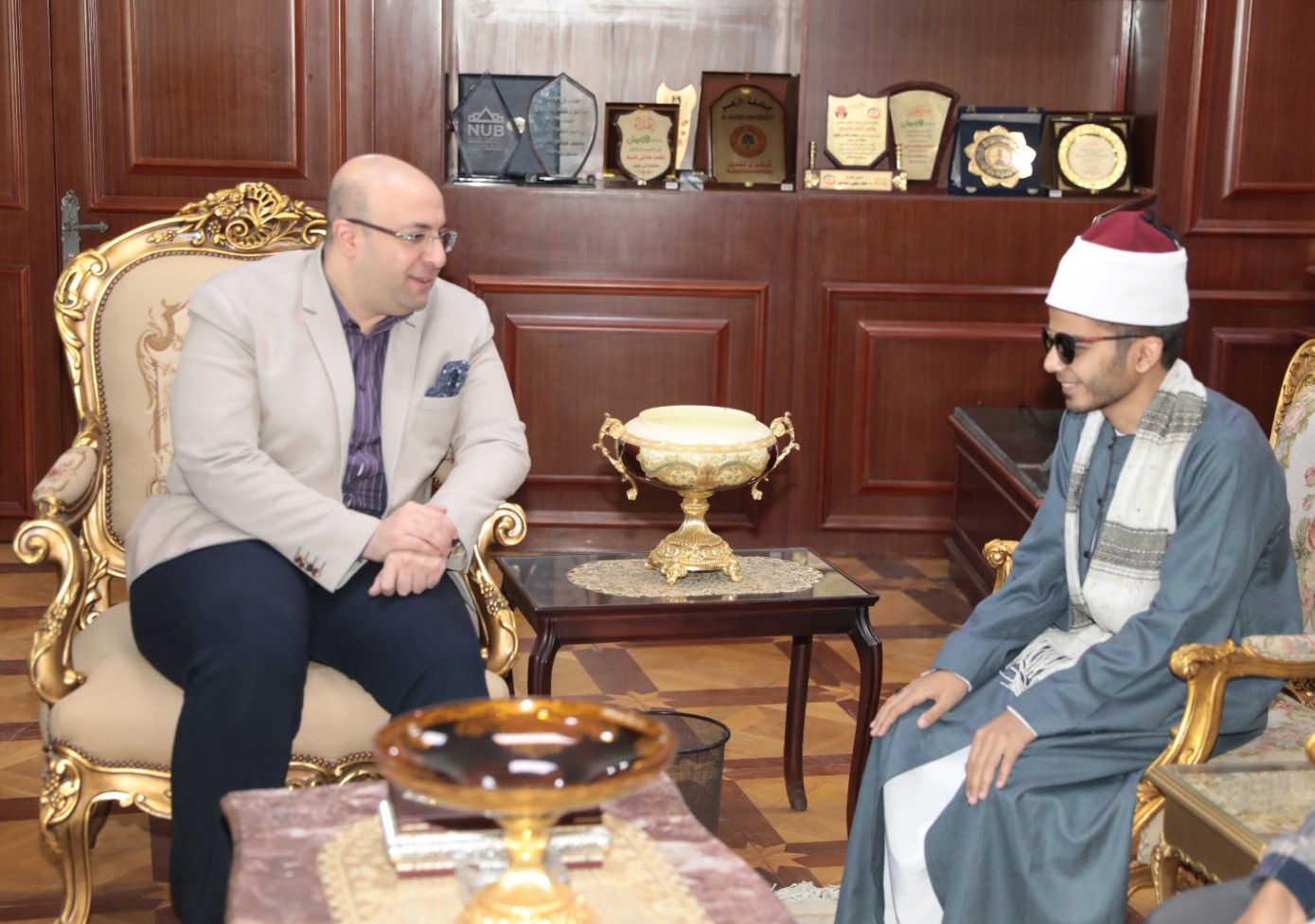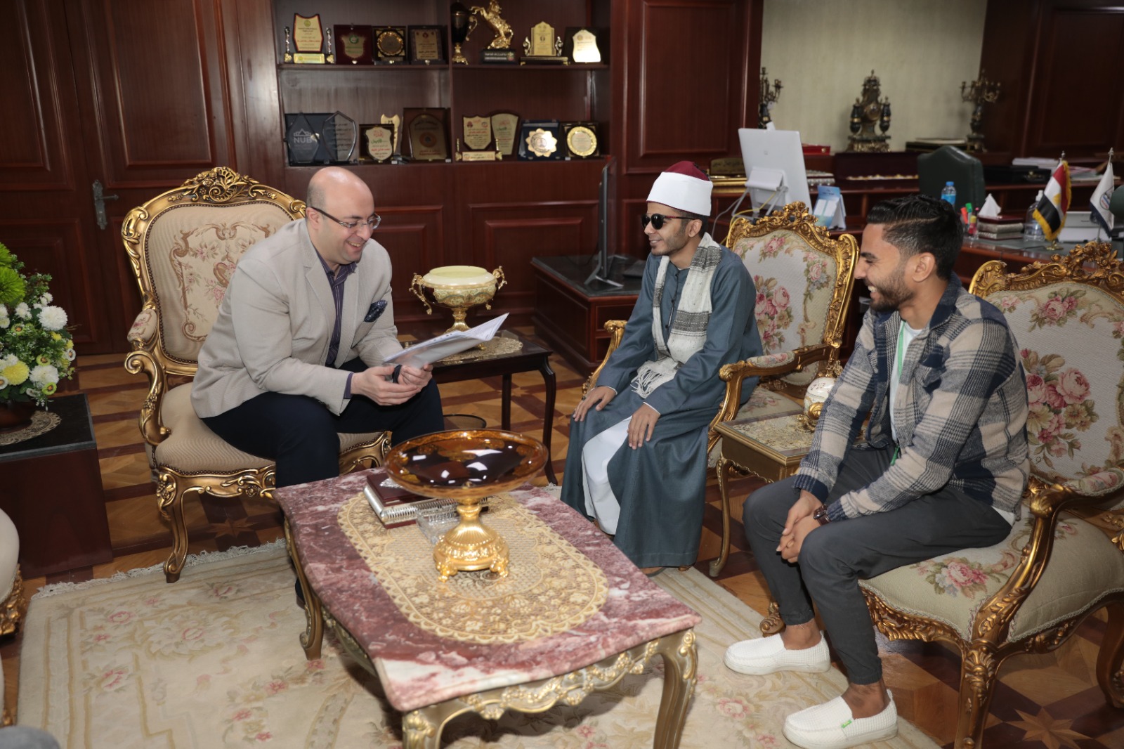 وعبر"الشيخ نادي" عن تقديره للمحافظ "الدكتور محمد هاني غنيم" لحرصه على لقائه وتهنئته وتكريمه مرتين خلال أقل من عام، مشيرًا إلى أنه يستشعر فضل الله أن وفقه يسر له حفظ كتابه واتقانه، بما يمثل دافعا قويا لتحقيق حلمه بأن يصبح داعية إسلامي، لنشر تعاليم الدين السمحة وتصحيح المفاهيم الخاطئة عن الإسلام.