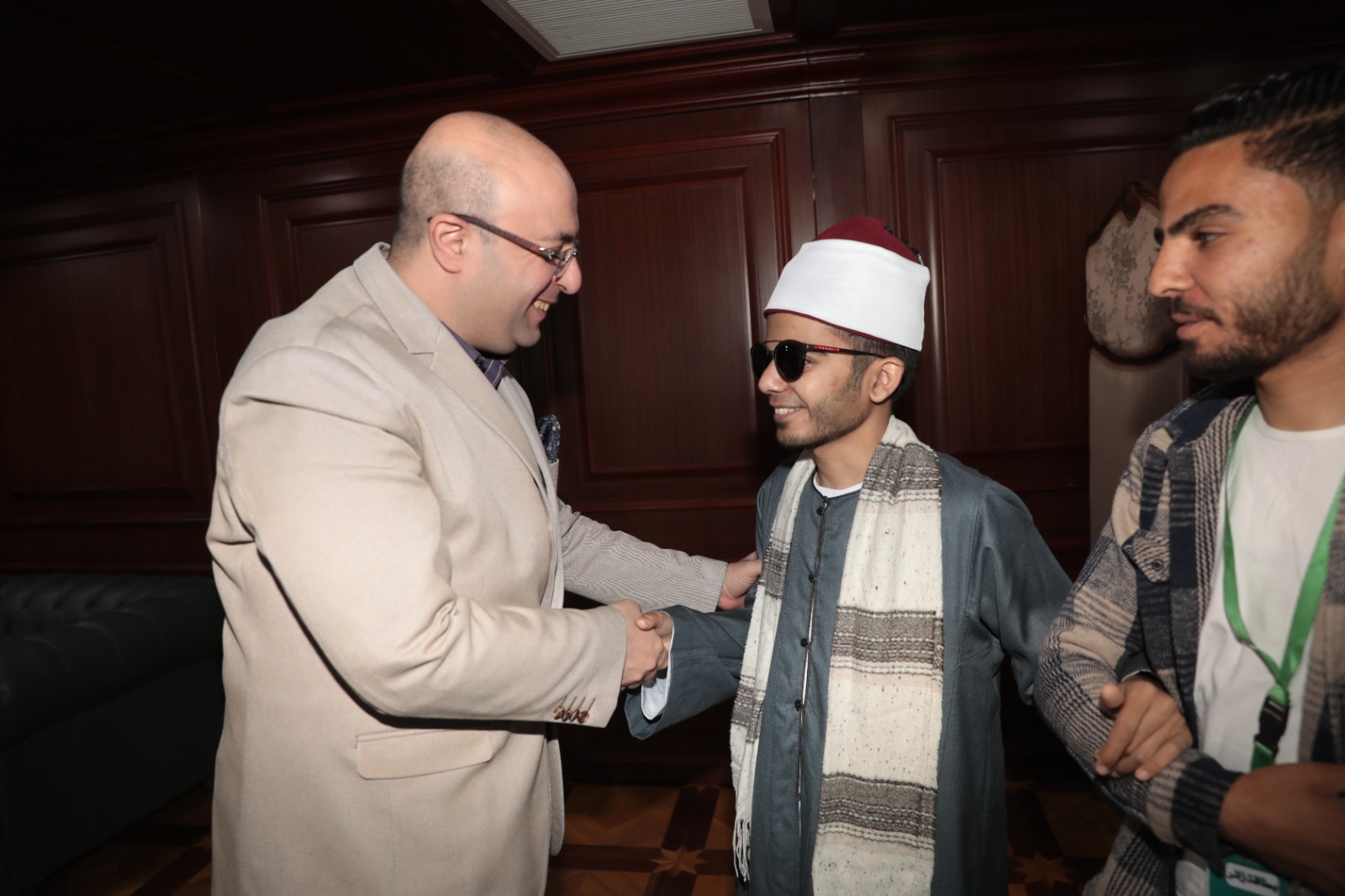 وأشار الشيخ نادي جابر إلى حصوله على المركز الأول فى مسابقة القرآن الكريم لذوى الاحتياجات الخاصة والتى نظمتها وزارة الأوقاف وتم تكريمه من قبل الرئيس عبد الفتاح السيسي، مؤكدًا أنه سعيد بهذا التكريم وأنها لحظة فارقة فى حياته أن يقف أمام الرئيس ويتم تكريمه.
