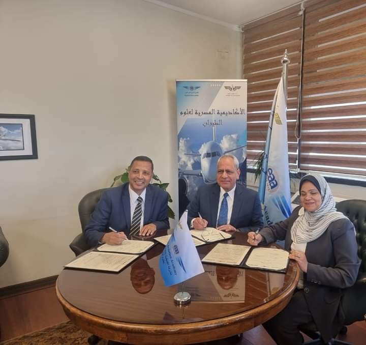 وقعت كلية الدراسات المتخصصة بالاكاديمية المصرية لعلوم الطيران بروتوكول تعاون مع معهد هندسة وتكنولوجيا الطيران بمطار إمبابة، وبحضور كل من الدكتور علوى عيسى الخولى عميد معهد هندسة وتكنولوجيا الطيران والمهندسة هبة عز الدين عميد كلية الدراسات المتخصصة بالأكاديمية.