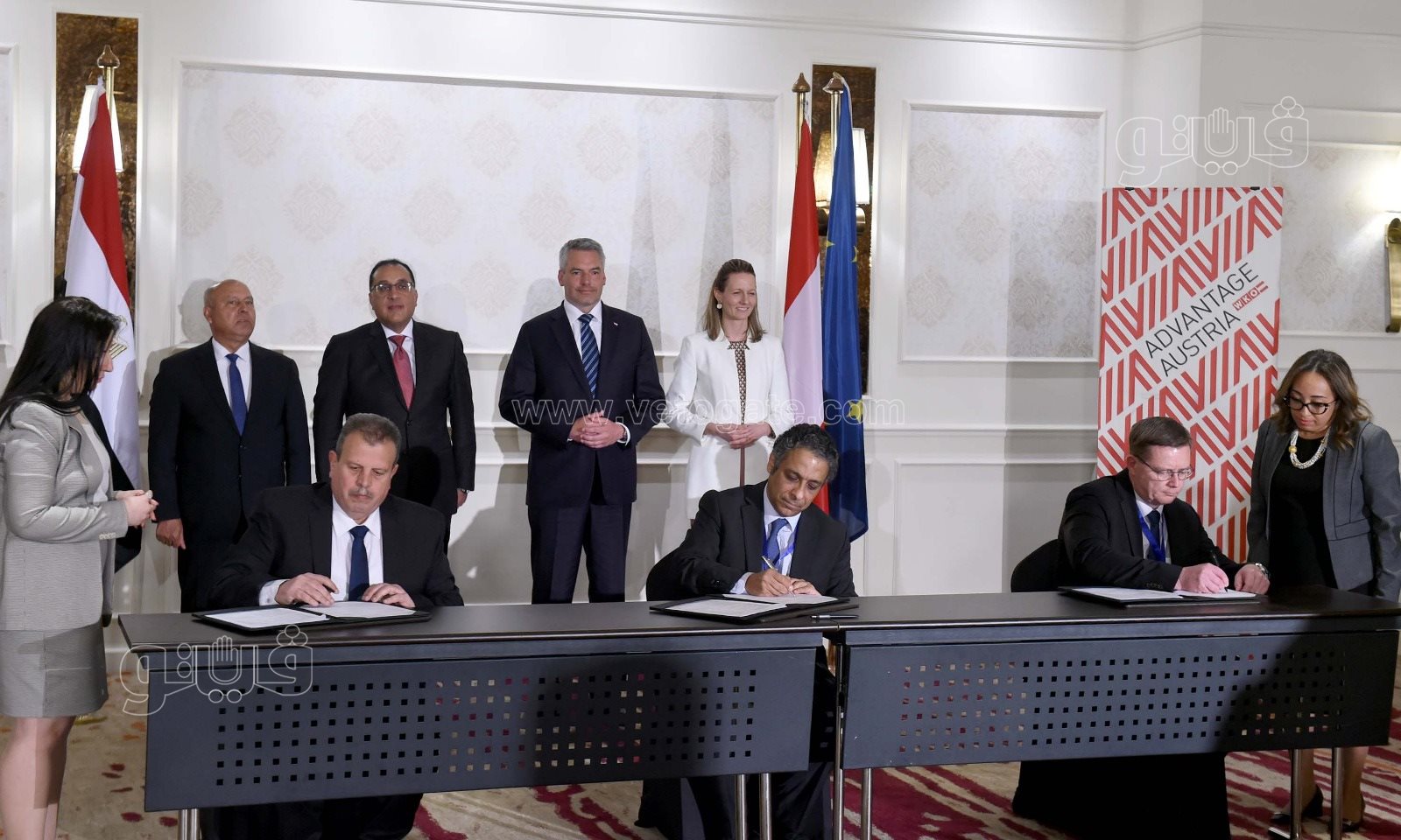 على هامش منتدى الأعمال المصري النمساوي، الذي تستضيفه القاهرة اليوم، شهد الدكتور مصطفى مدبولي، رئيس مجلس الوزراء، وكارل نيهامر، المستشار الاتحادي لجمهورية النمسا، مراسم توقيع مذكرة تفاهم ثلاثية بين الهيئة القومية لـ سكك حديد مصر، وشركة "بلاسر وتويرر" النمساوية وشركة "بلاسر" مصر.