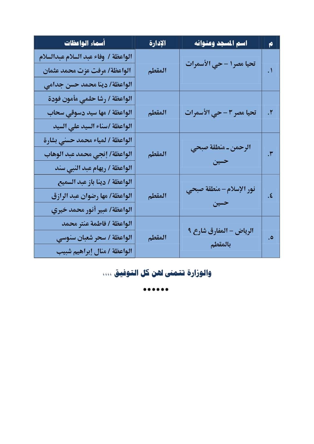 يأتي ذلك في إطار الدور الدعوي والتثقيفي الذي تقوم به وزارة الأوقاف، وفي إطار عناية الأوقاف بدور المرأة وإشراكها في الأنشطة الدعوية على النحو التالي: