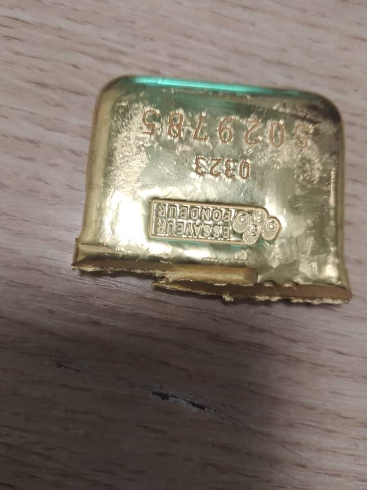 وقام علاء الدين جمعه مشرف الصالة، بتكليف محمود خضر وعبدالله مصطفي ودينا عماد مأموري الجمرك بتفتيش حقائب الراكب بحضور أحمد المراغي وهيثم فؤاد أمن جمركي تحت إشراف أسامة عبدالحليم مدير إدارة الأمن الجمركي بالأقصر ومحمد محرز وحسن السكري ومحمود شلتوت بمكافحة التهرب الجمركي فتبين وجود سبيكة ذهبية بوزن ٤٠٠ جرام تقريبا داخل حقائب الراكب.