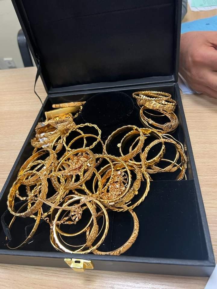 وقام علاء الدين جمعه المشرف على صالة الوصول بتكليف بسمة حسن وعبدالله مصطفي ودينا عماد مأموري الجمرك بتفتيش حقائب الراكبة بحضور هيثم فؤاء وأحمد المراغي أمن جمركي وصفاء شلبي ومحمد محرز مكافحة تهرب جمركي؛ وكذا تكليف دينا عماد مأمور الجمرك وصفاء شلبي بتفتيشها ذاتيا فتبين وجود ٥٢ قطعه ذهبيه مختلفه الأحجام والأنواع بوزن ٥٠٠ جرام تقريبا.