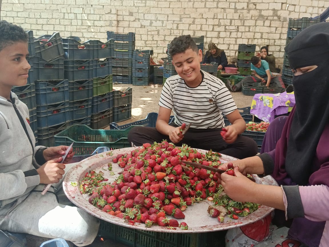 مستقبل أفضل للأطفال.. ذلك هو السبب الذي جعل إيمان تستكمل عملها في تقميع الفراولة رغم إصابتها في يدها، لكنه لم يكن السبب الوحيد فالسبب الآخر هو فصل زوجها من العمل بعد أن أقعده المرض.