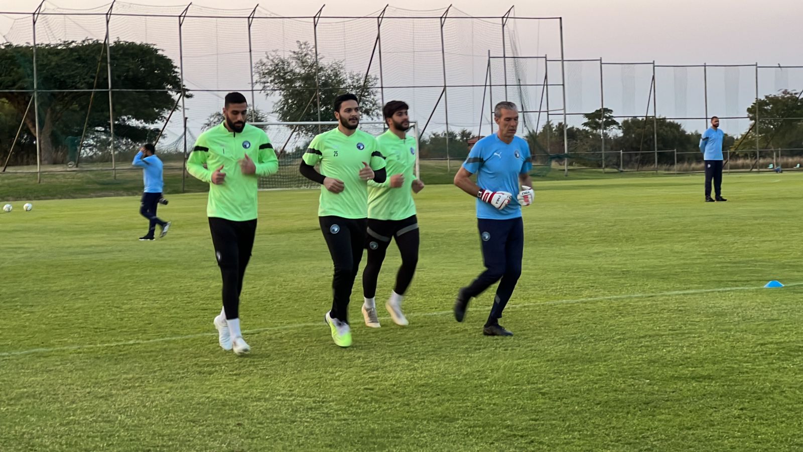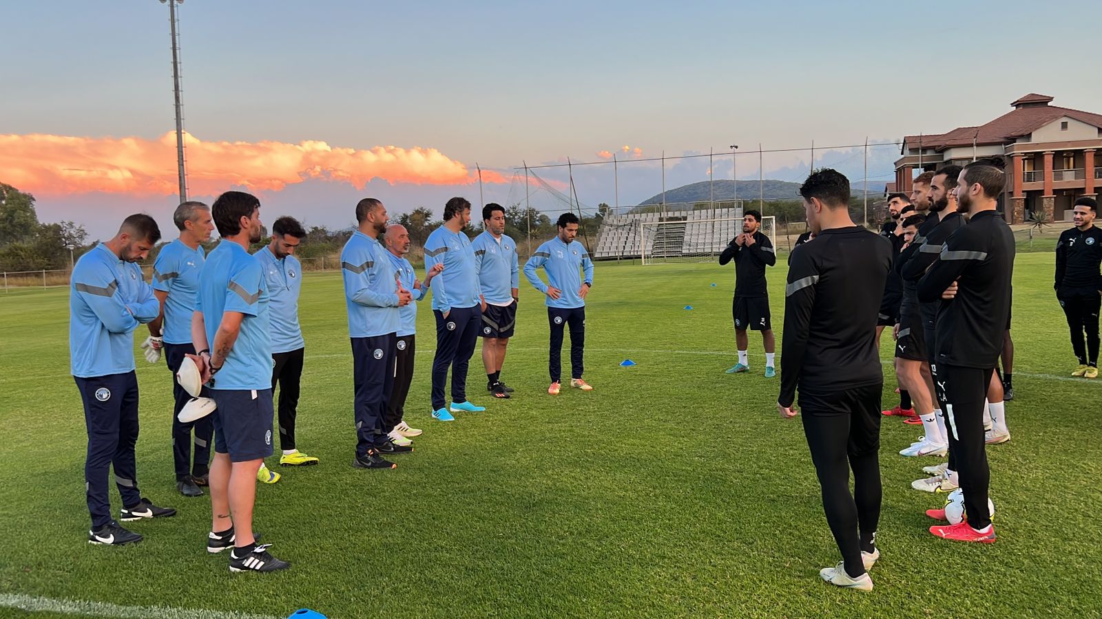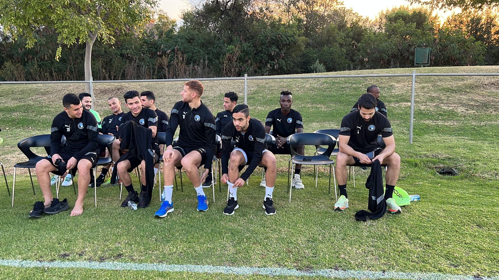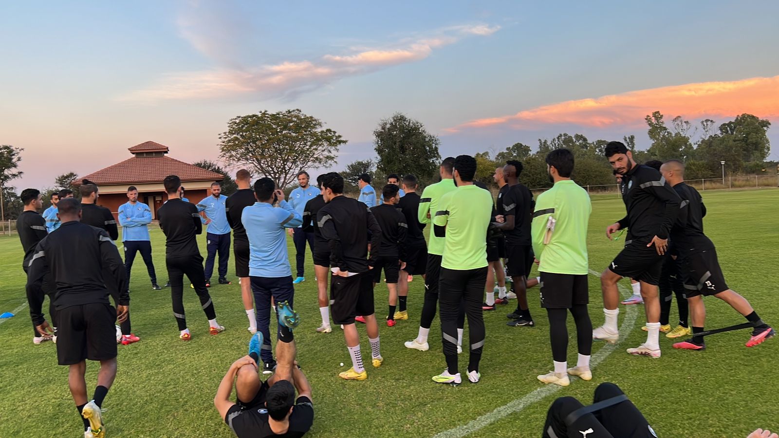 ووصلت بعثة الفريق ظهر اليوم الجمعة لمقر فندق إقامتها في مدينة روستنبرج بعدما حطت الطائرة الخاصة بمدينة جوهانسبرج، وفضل المدير الفني البرتغالي جايمي باتشيكو خوض الفريق لمران بملعب فندق الإقامة بدون راحة.