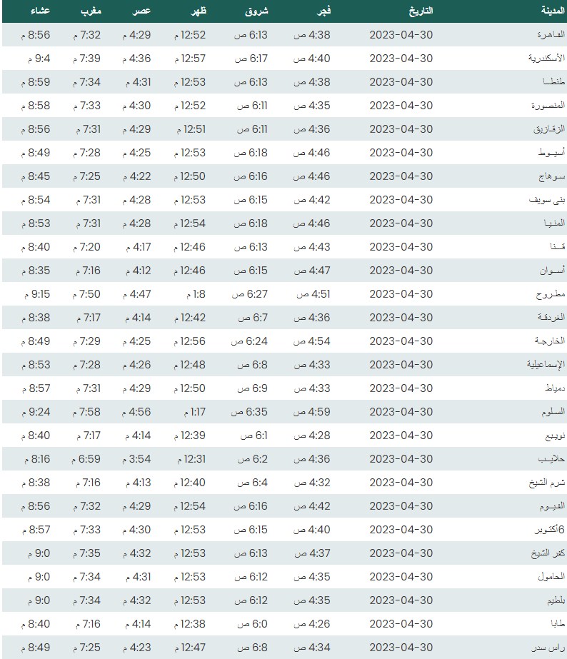 مواقيت الصلاة اليوم بتوقيت القاهرة