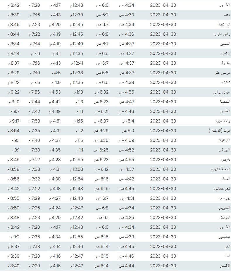 مواقيت الصلاة اليوم، موعد أذان المغرب اليوم الأحد 30 -4-2023 بتوقيت القاهرة والمحافظات بالتوقيت الصيفي