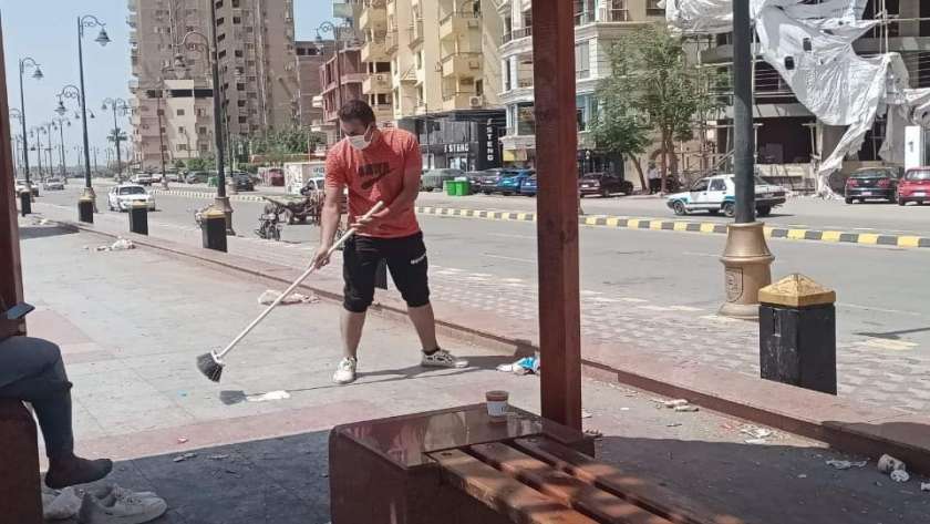محافظ بني سويف يكرم شابا تطوع لمساعد عمال النظافة