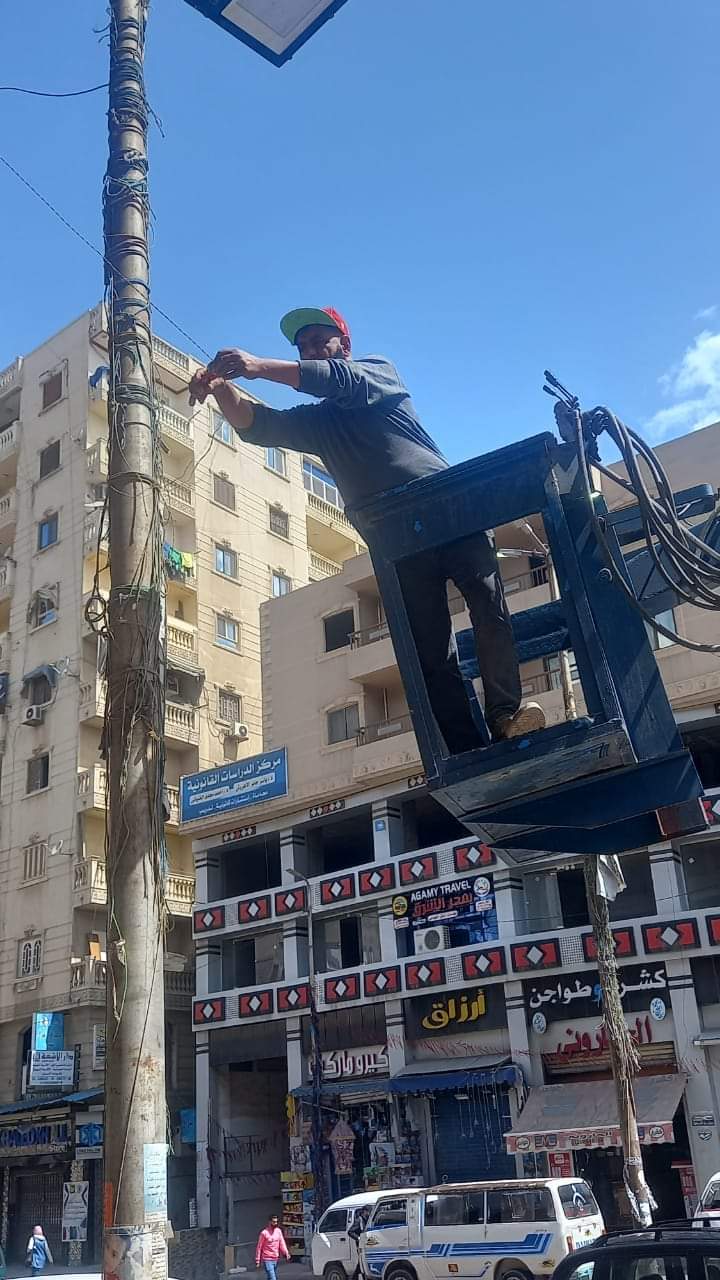 وتنفيذ لتكليفات رئيس حى العجمى بإستمرار أعمال الصيانة لشبكة الإنارة العامة بنطاق الحى والإستجابة لشكاوى المواطنين. قامت إدارة الكهرباء بالحى بالأعمال الأتية:-