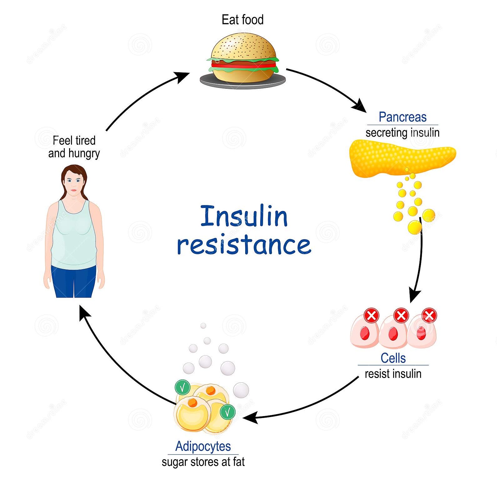 ويشير دكتور محمد عبد العزيز استشاري أمراض الباطنة والغدد الصماء، إلى أن الكربوهيدرات والسكريات والنشويات الموجودة في العديد من الأطعمة، تعتبر مصدرًا رئيسيًا لطاقة جسمك، ويقسم جهازك الهضمي الكربوهيدرات إلى جلوكوز، أو سكر، ثم يتم إطلاقه في مجرى الدم. وبمساعدة الأنسولين، يمكن امتصاص الجلوكوز في خلايا الجسم لاستخدامه في الطاقة أو التخزين، ولكن إذا كنت تعاني من مقاومة الأنسولين، فستواجه خلايا الجسم مشكلة في امتصاص هذا الجلوكوز، وسيحتاج الجسم إلى المزيد من الأنسولين ليعمل بشكل صحيح.