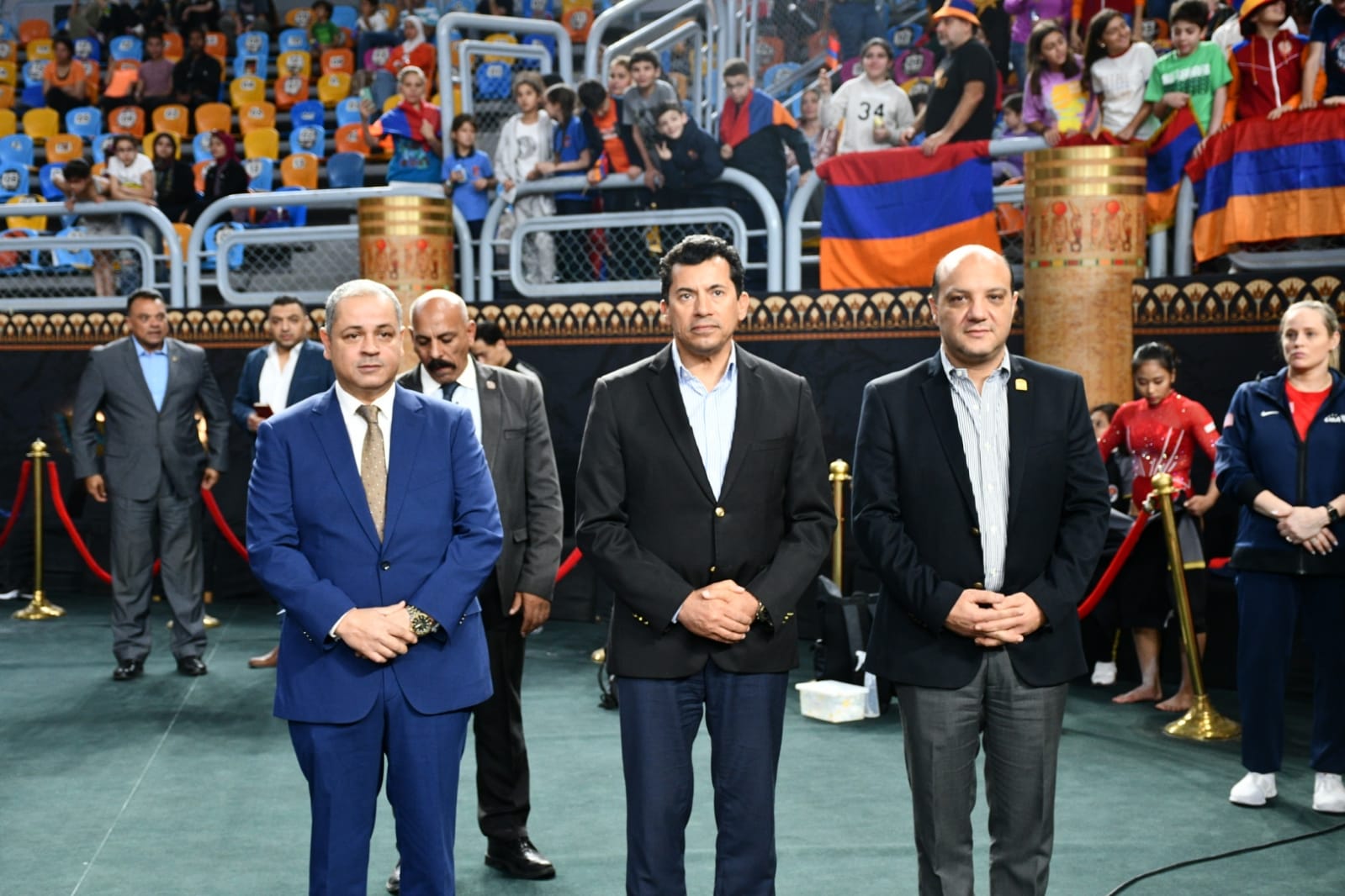 فيما شهد الدكتور أشرف صبحي وزير الشباب والرياضة، اليوم السبت، جانب من منافسات بطولة كأس العالم لـ الجمباز الفني رجال وسيدات "القاهرة 2023" المقامة على الصالة المغطاة بإستاد القاهرة الدولي خلال الفترة من 27 حتى 30 أبريل الجاري.