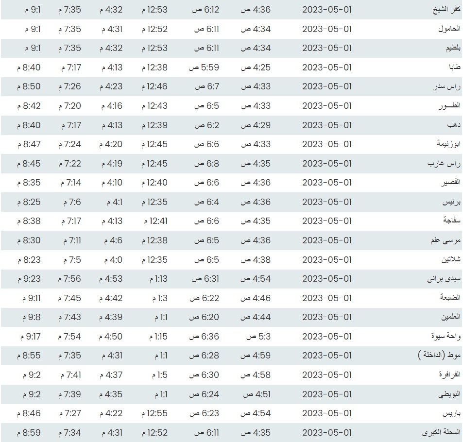 مواقيت الصلاة اليوم بتوقيت أسيوط
