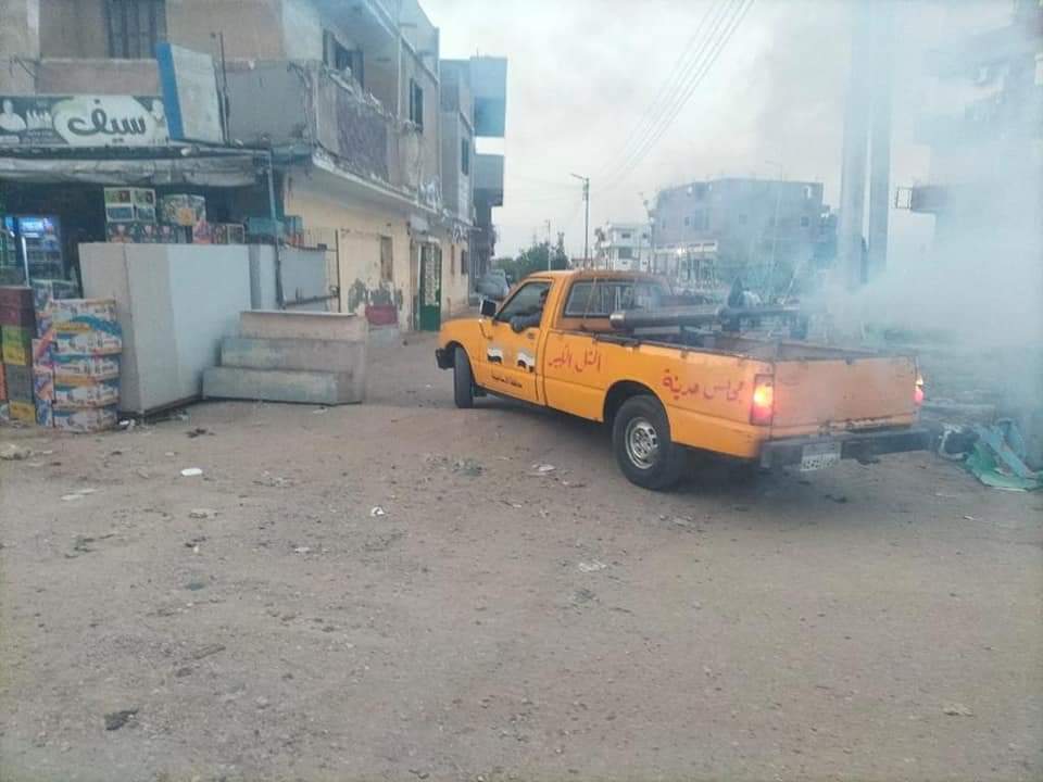 ومن جهة أخرى قامت المراكز والمدن برش وتعقيم مباني الوحدات المحلية والجهات الحكومية، وعدد من المدارس، وبالأخص مدارس القرى وتوابعها وعدد من مكاتب البريد، كما يتم تعقيم المساجد.