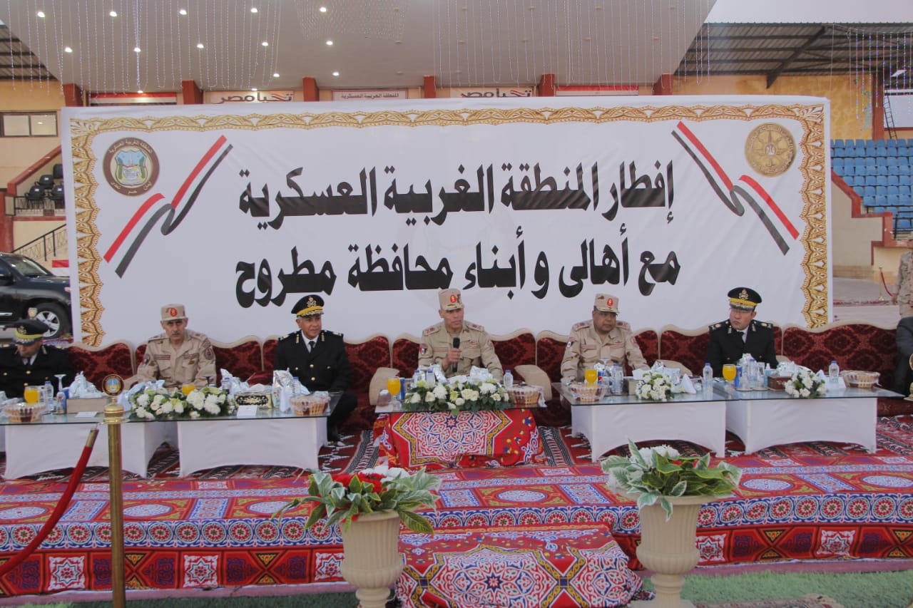 كما قامت المنطقة الغربية العسكرية بتنظيم إفطار جماعى ضم (5000) فرد من أبناء محافظة مطروح، فضلًا عن توزيع (1000) قطعة ملابس على الأطفال بالقرى تزامنًا مع الإحتفال بعيد الفطر المبارك.