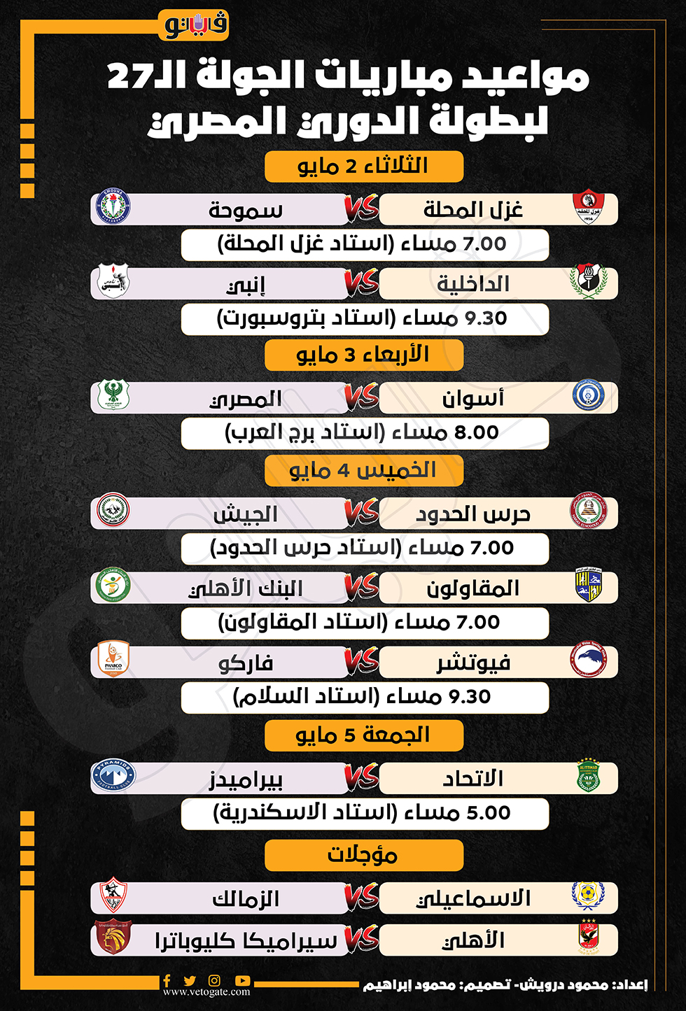 مواعيد مباريات الجولة الـ27 لبطولة الدوري المصري (إنفوجراف)